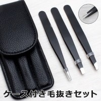 用途によって使い分けできる毛抜き3種セット。 先細/先平/ピンセット の3種入り。 密集した毛や細い毛、太い毛もしっかり挟んで抜くことができます。 旅行や出張に持って出かけるのに便利なケース付き。 3本をまとめて保管しておくことができます。 自宅用としてはもちろん、職場の更衣室のロッカーに置いておくのもオススメ。 また、救急箱に常備しておけば、いざというときに役立ちます! さびにくく丈夫なステンレス製。 シックなカラーで高級感のあるデザイン。 ちょっとしたノベルティ・粗品にもぴったりです。 サイズ(約) 11×5.0×1.6cm(ケース含む) 9.6×1.0×1.0cm(1本)