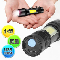 カラビナライト 充電式LEDライト ハンディライト サイドライト 小型 軽量 COB型 ◇ カラビナ付フラッシュライト